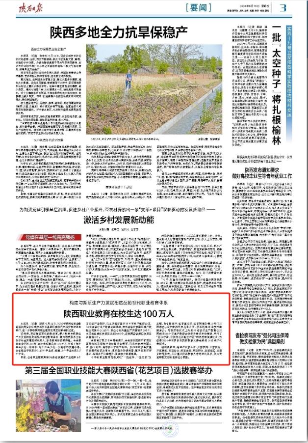 【陕西日报】构建与新质生产力发展相匹配的现代职业教育体系 陕西职业教育在校生达100万人