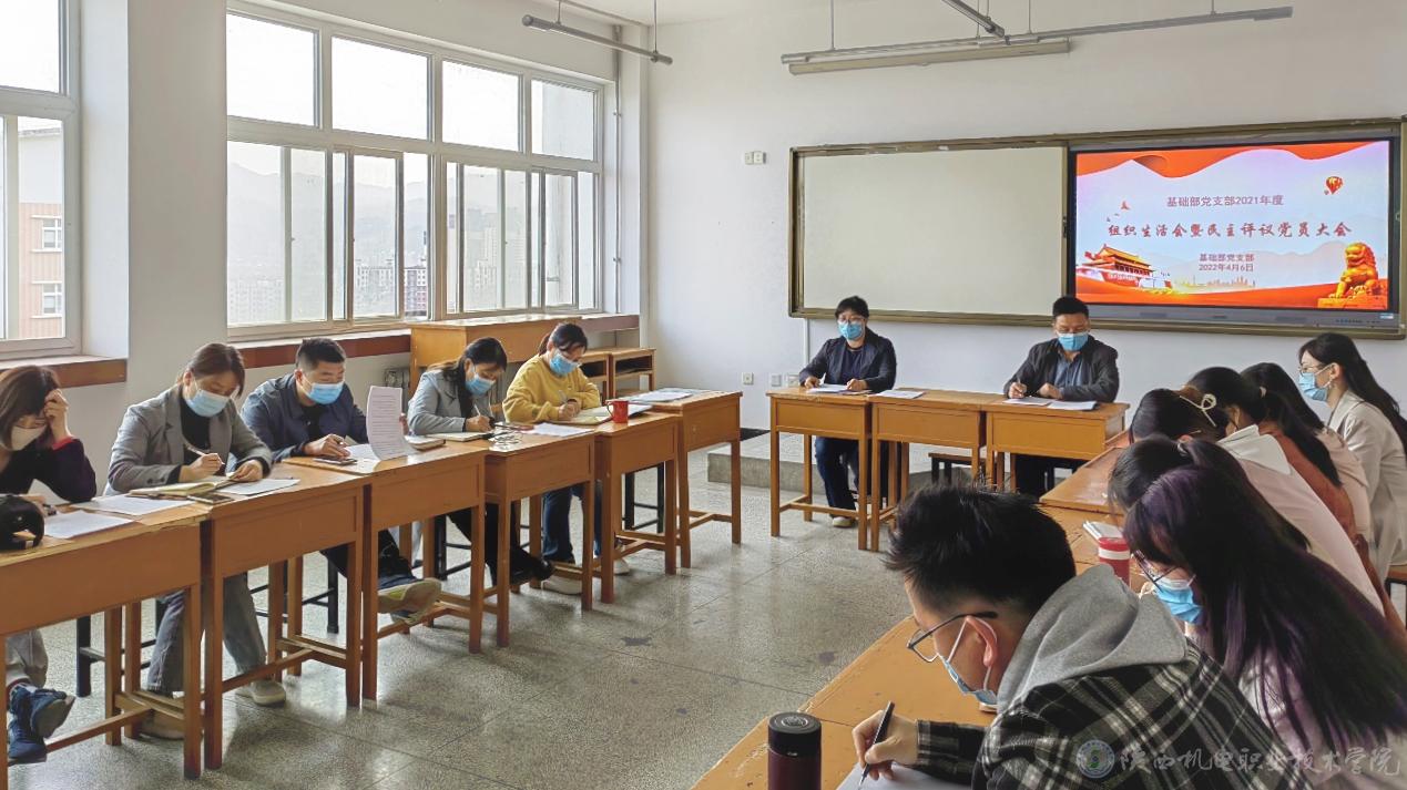 按照学院党发[2022]26号文件精神,4月6日下午基础部党支部在宝福路校区第一教学楼405室召开了2021年度组织生活会。会议由党支部书记满春燕主持,支部25名党员参加,党委副书记、纪委书记齐晓军参加并指导。