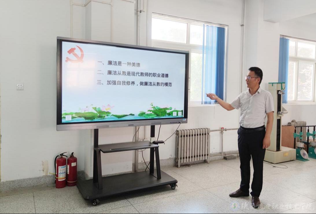 6月1日下午2:30,铁道工程学院党支部书记贾九荣为全体党员和教师讲授了一堂《廉洁从教》主题党课。