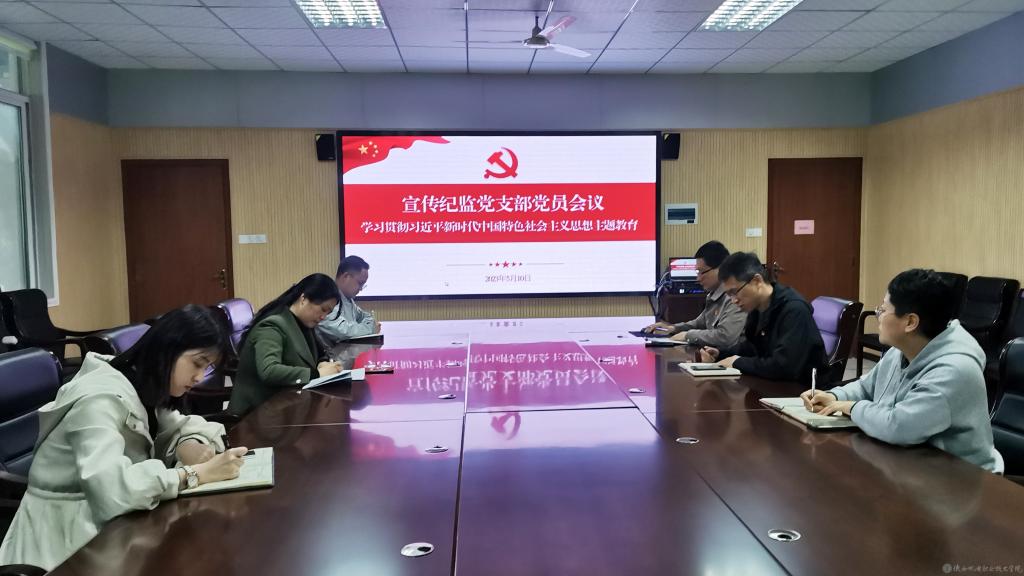 5月10日上午,宣传纪监党支部在蟠龙校区图书馆二楼会议室召开学习贯彻习近平新时代中国特色社会主义思想主题教育专题学习暨工作部署会。会议由党支部书记李明主持,支部全体党员参加。
