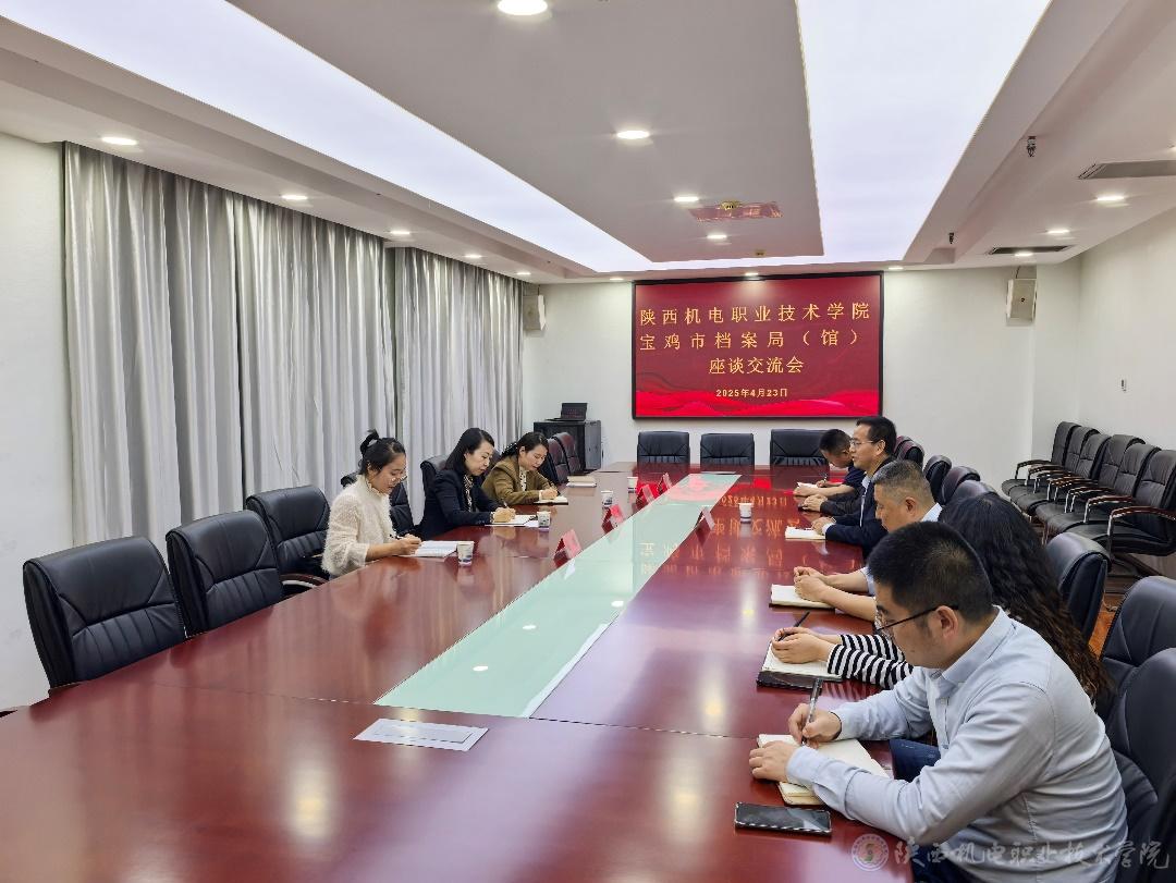 最后,双方进行座谈交流。闫局长详细介绍了宝鸡市档案局(馆)的组织架构、职能特色及近年来在档案资源开发、数字转型、服务民生等方面取得的成效。他指出,市档案局始终秉持“为党管档、为国守史、为民服务”的宗旨,期待与陕西机电职院在更多领域深化合作。