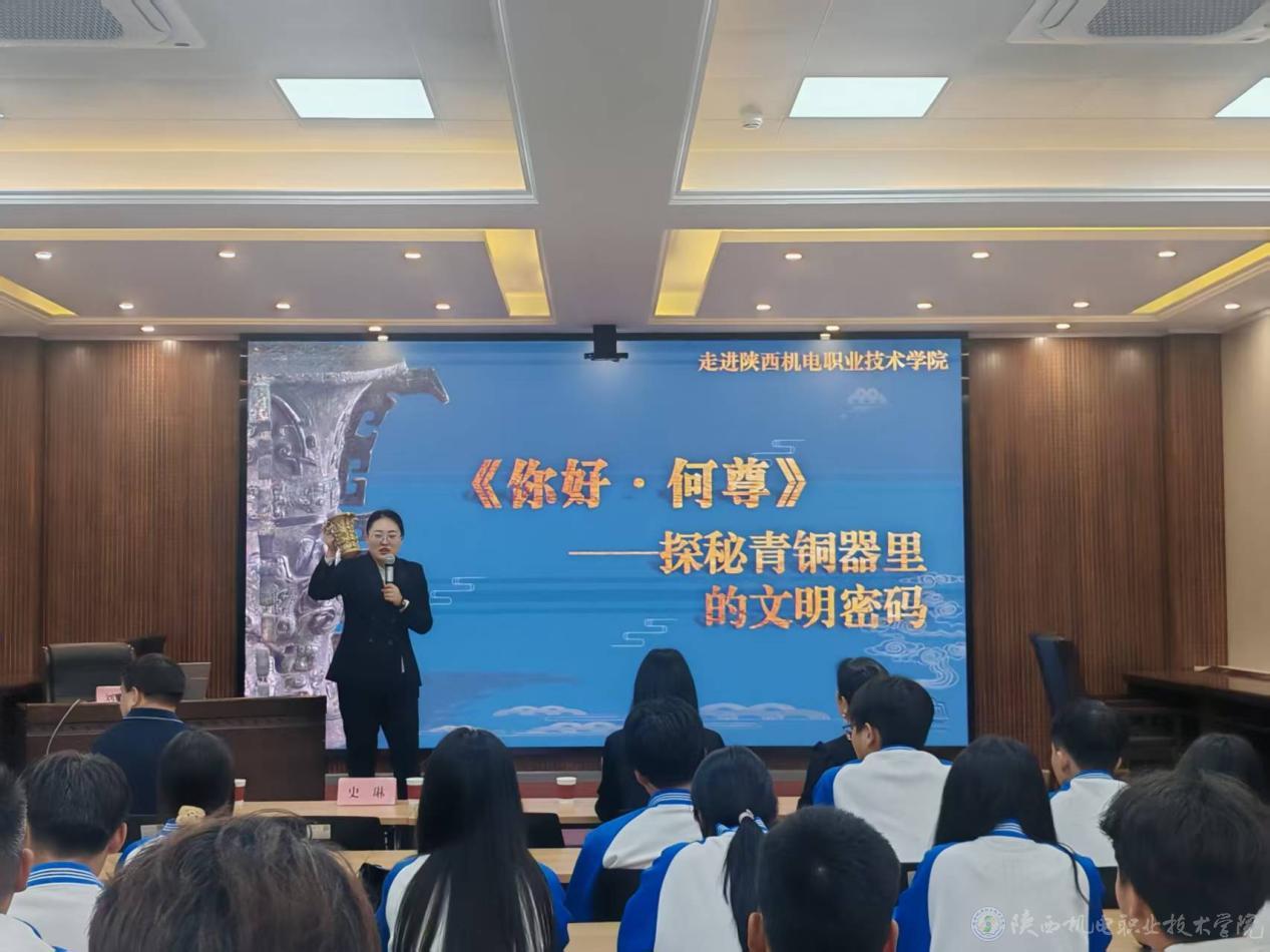 宝鸡青铜器博物院一级讲解员刘瑞雪为师生作《你好·何尊—探秘青铜器里的文明密码》的专题讲座。